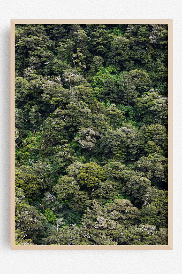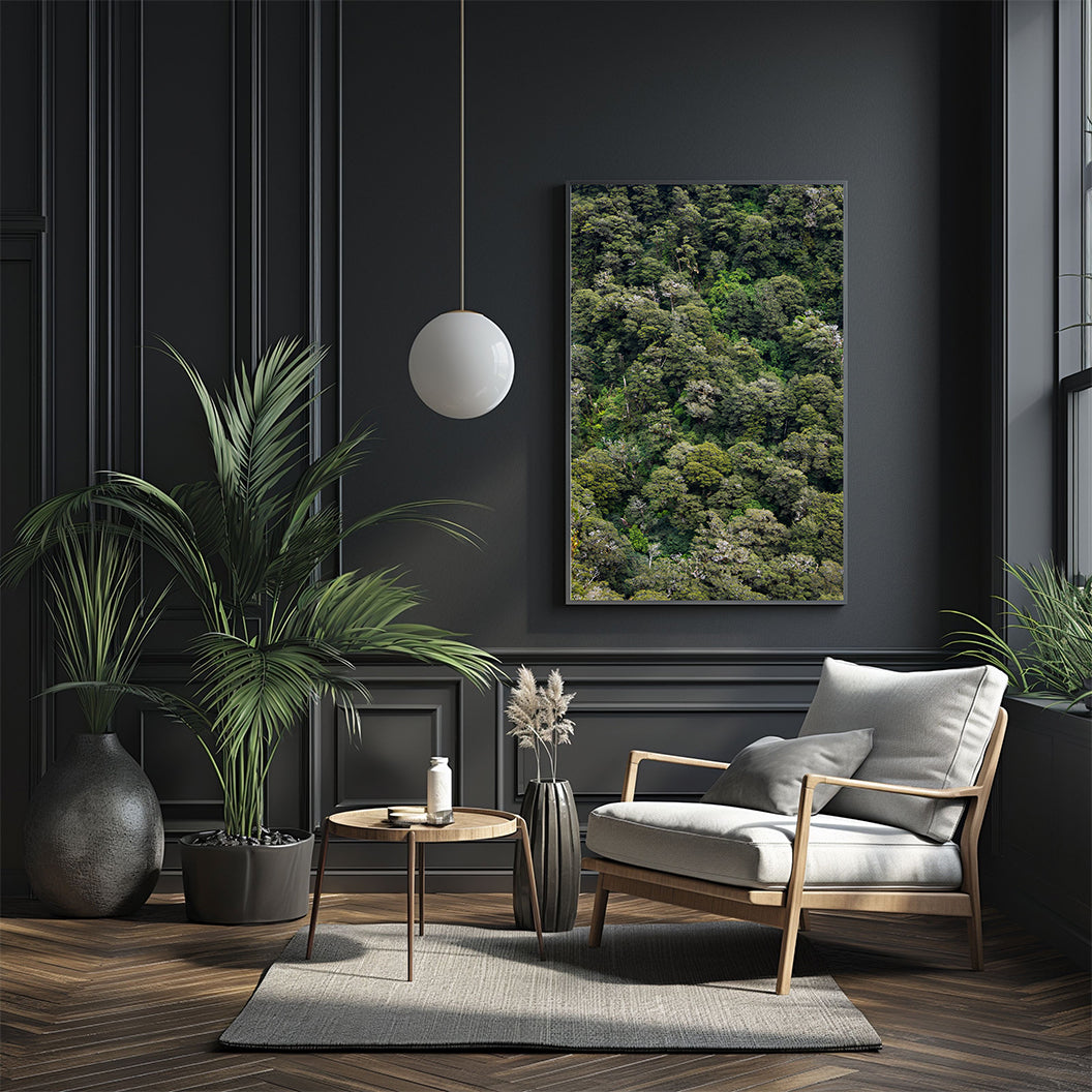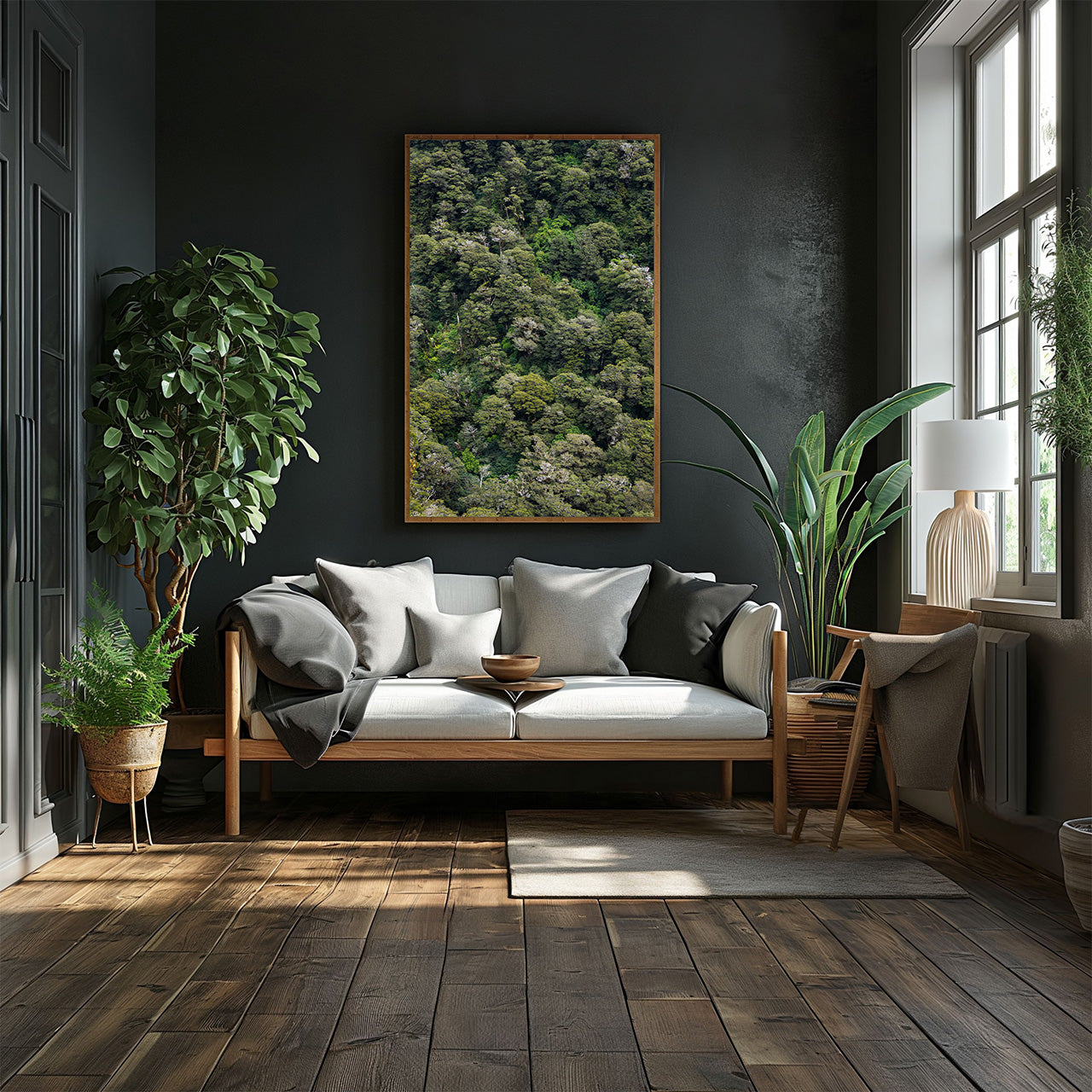 This is a portrait of protection. Dense, layered, and unapologetically green, it honours the places that keep their own counsel and play by nature's rules. The mood is intimate — like stepping from bright day into shade and feeling your shoulders drop as you embrace an old friend. In a home, it adds weight and texture to light palettes, grounding whites, flax tones, and soft greys. Perfect for entryways and dining spaces that want presence without gloss. Wall art NZ that feels steady, not staged. Invite this deep green stillness indoors.