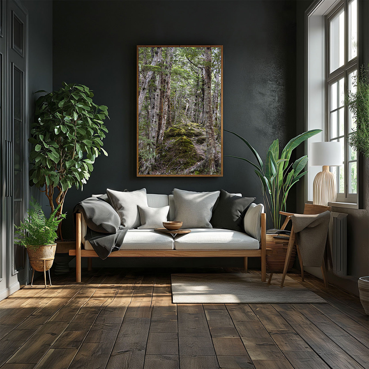 Beneath Fiordland’s canopy, the world narrows to what matters: breath, footfall, and the clean scent of wet leaf and earth. This piece carries the hush of Rawiri Bay’s forest — dense, green, and protective —where the track tilts upward and time seems to slow with it. Light arrives in fragments through beech and fern, turning every step into a quiet kind of noticing. It’s a reminder that in Aotearoa’s deep south, beauty isn’t always grand; often it’s close, patient, and waiting at shoulder height. Carry this Manapouri stillness into your everyday life.