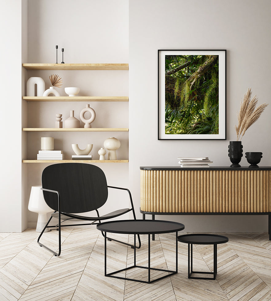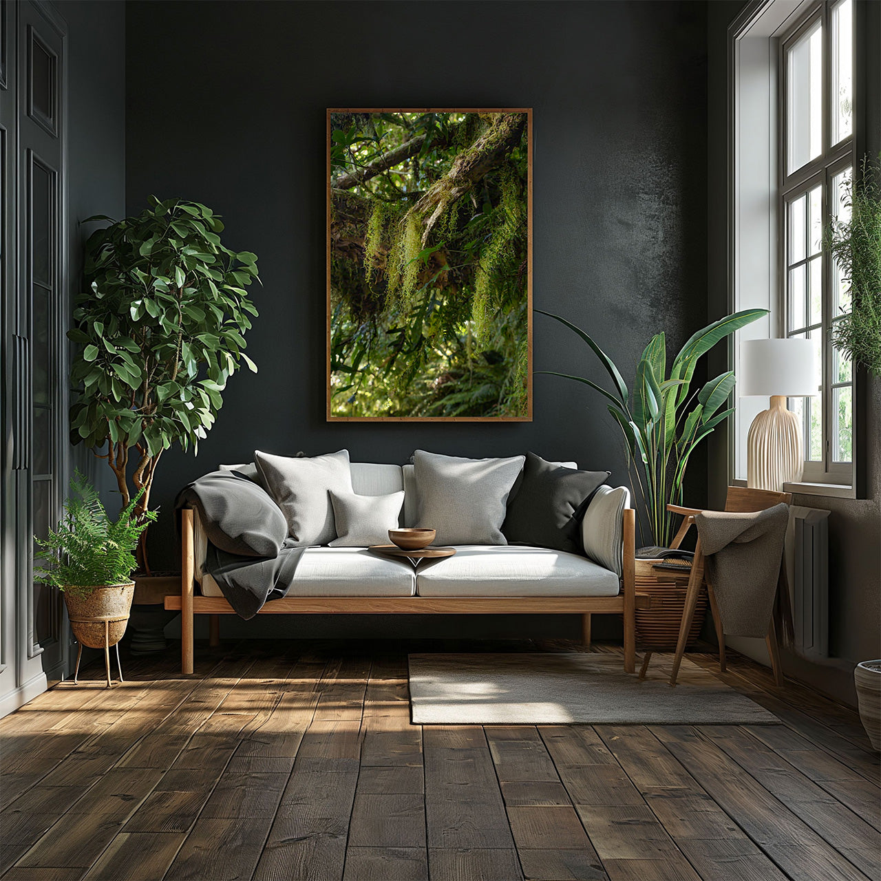 Time moves differently beneath the canopy of the Key Summit Track. The world narrows to texture: soft fronds, rough bark, cool shade, and the quiet work of growth. This is a study of endurance and tenderness, green with a silvered breath. It brings depth to light rooms and softness to clean lines. Original NZ photography, created to bring a gentle hush to your walls.