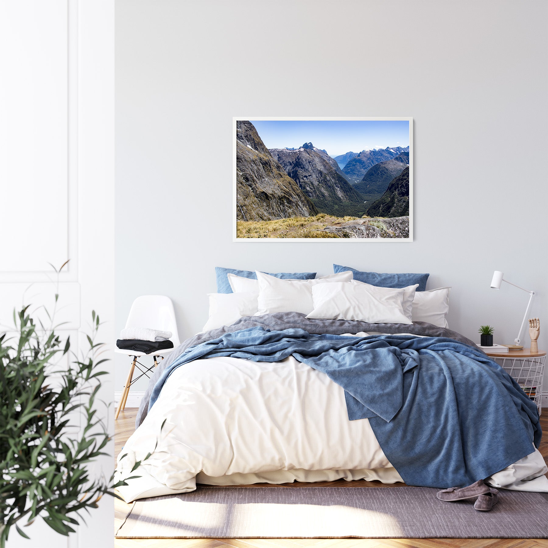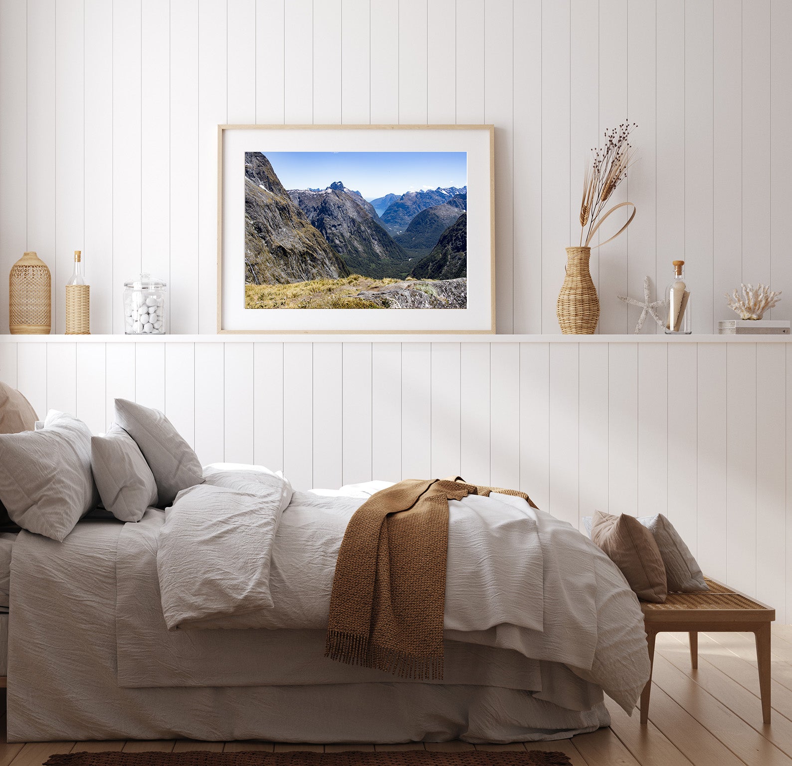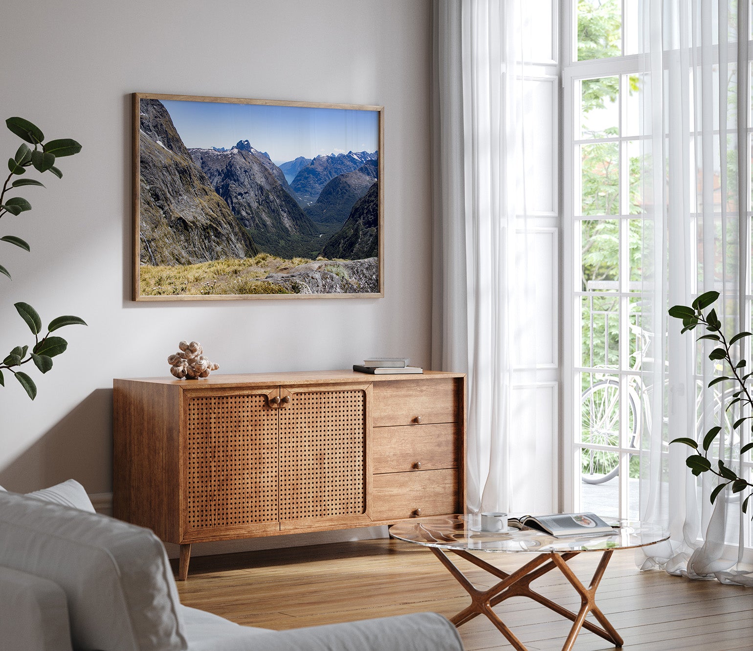 The Darran Mountains will bring a clean, spacious calm to a room—ideal above a sofa, console, or in a hallway that needs breathing room. Pair with oak, linen, and pale stone for a quiet lift. Bring this calm perspective home.